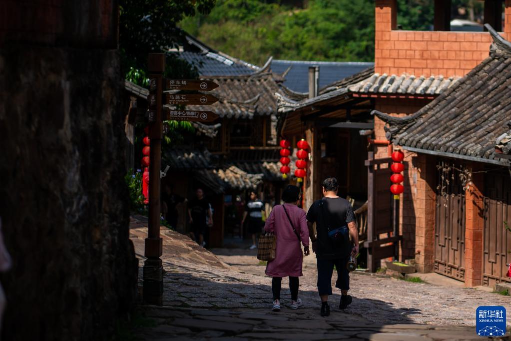 游客在云南省寧洱縣那柯里茶馬古道小鎮(zhèn)游覽(5月14日攝)。新華社記者江文耀攝