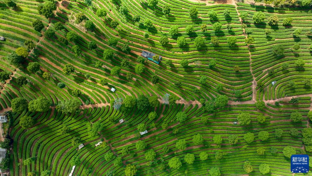 云南普洱市思茅區(qū)南屏鎮(zhèn)整碗村的有機(jī)茶葉基地(5月13日攝,無(wú)人機(jī)照片)。新華社記者江文耀攝