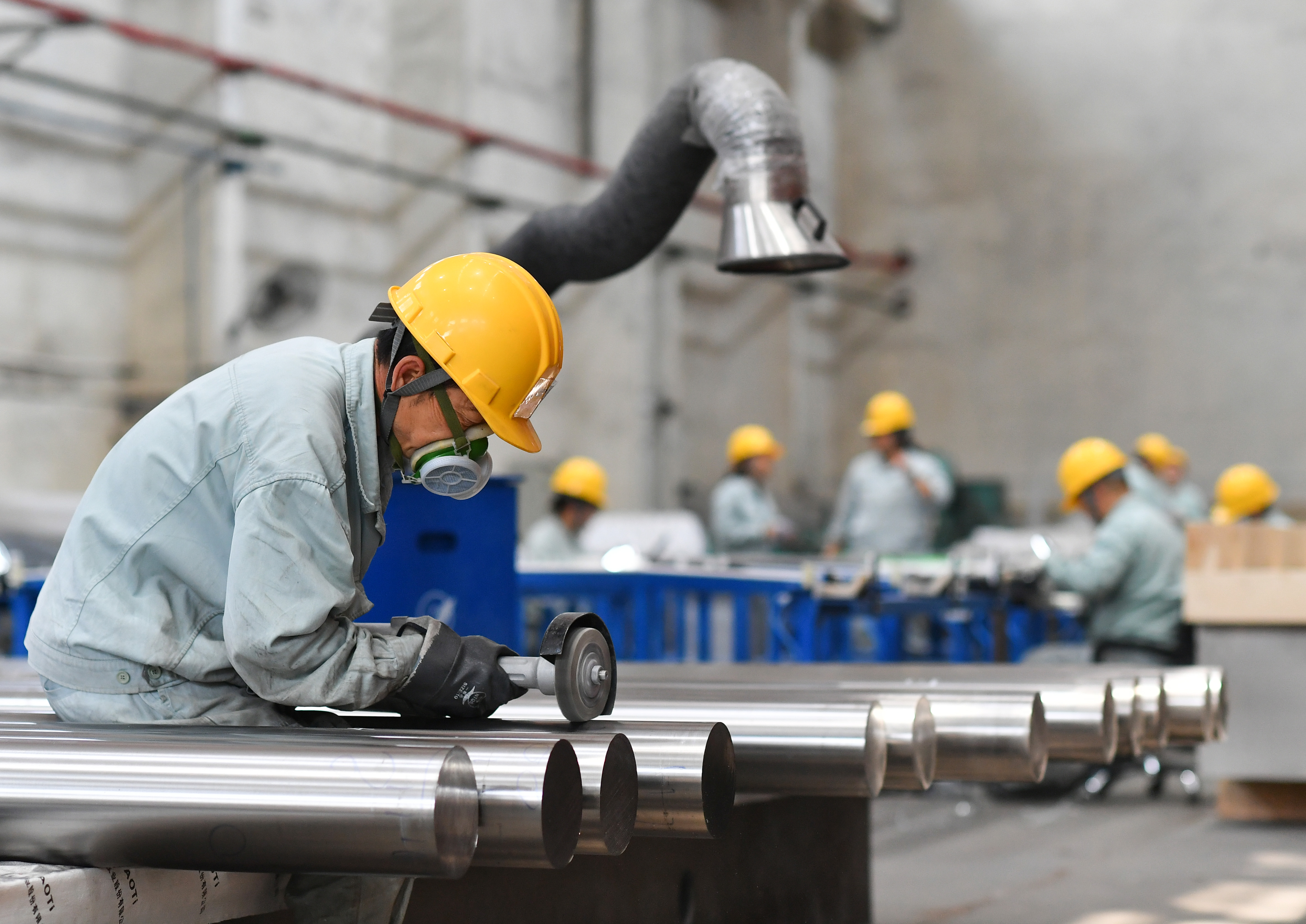 工人在中鐵寶橋集團(tuán)有限公司生產(chǎn)車間工作。新華社記者 張博文 攝