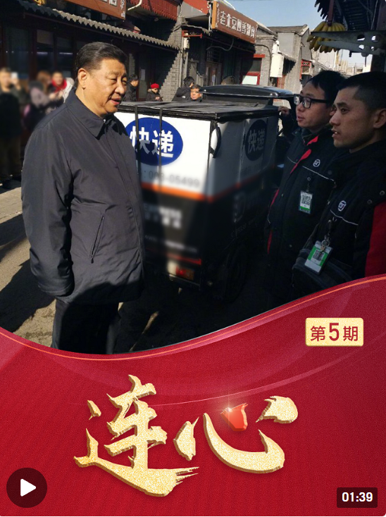 2019年春節(jié)前夕,北京前門石頭胡同快遞站點(diǎn),正準(zhǔn)備出門送貨的劉闊遇到了前來看望他們的習(xí)近平總書記。