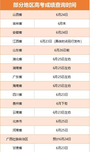 另外,還有一些省份給出了查分的大致時間范圍,如云南省將于6月23日左右出分,四川考生大概在6月23日可查分。