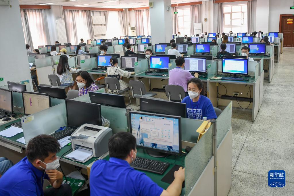 6月14日,在位于吉林長春的東北師范大學(xué)高考網(wǎng)上評卷點,工作人員在評卷。據(jù)了解,2022年吉林省高考評卷工作全部采用電子掃描、網(wǎng)上評卷方式進行。新華社記者 張楠 攝