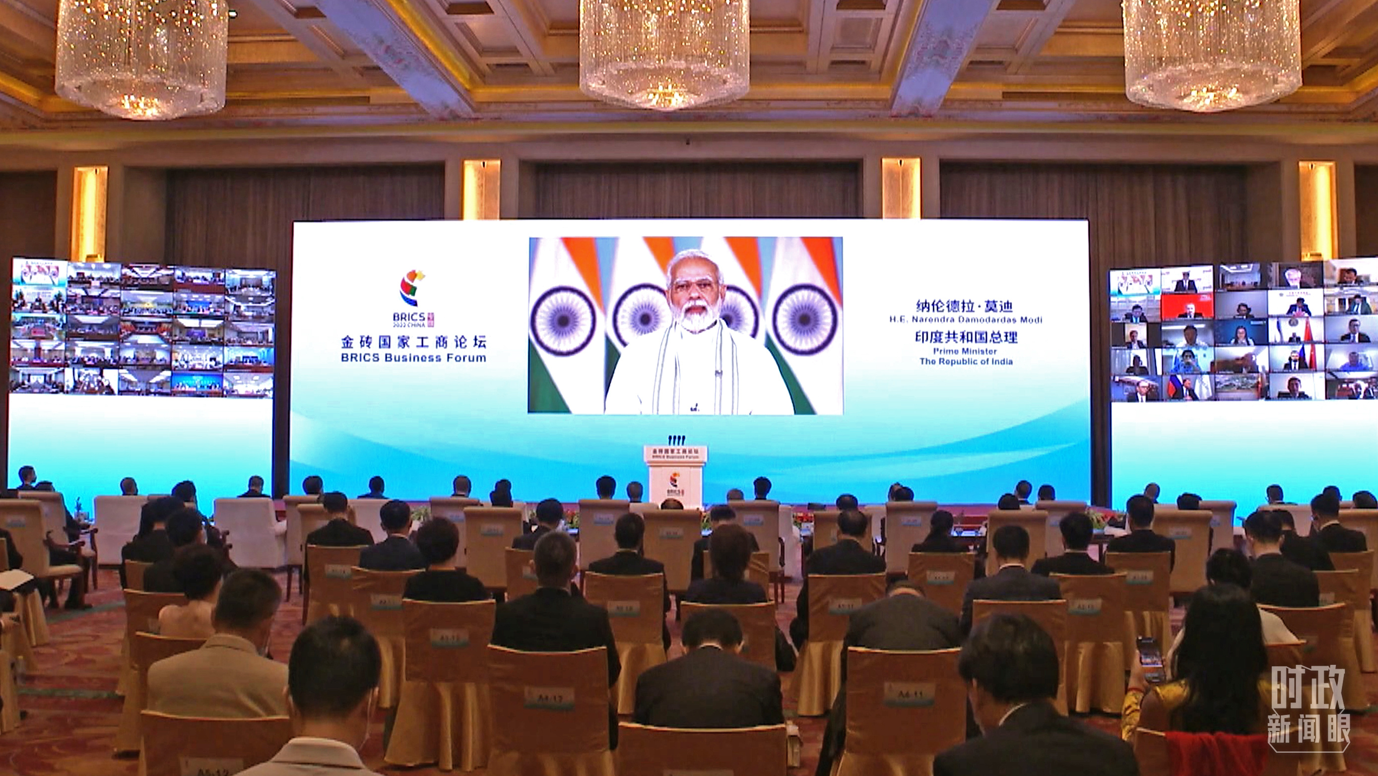 時(shí)隔五年,中國(guó)再次作為主席國(guó)主辦金磚會(huì)晤。今年金磚國(guó)家工商論壇以線上線下相結(jié)合的方式舉行。金磚五國(guó)領(lǐng)導(dǎo)人齊聚當(dāng)晚的論壇開幕式,南非總統(tǒng)拉馬福薩、巴西總統(tǒng)博索納羅、俄羅斯總統(tǒng)普京、印度總理莫迪也以視頻方式出席并致辭。
