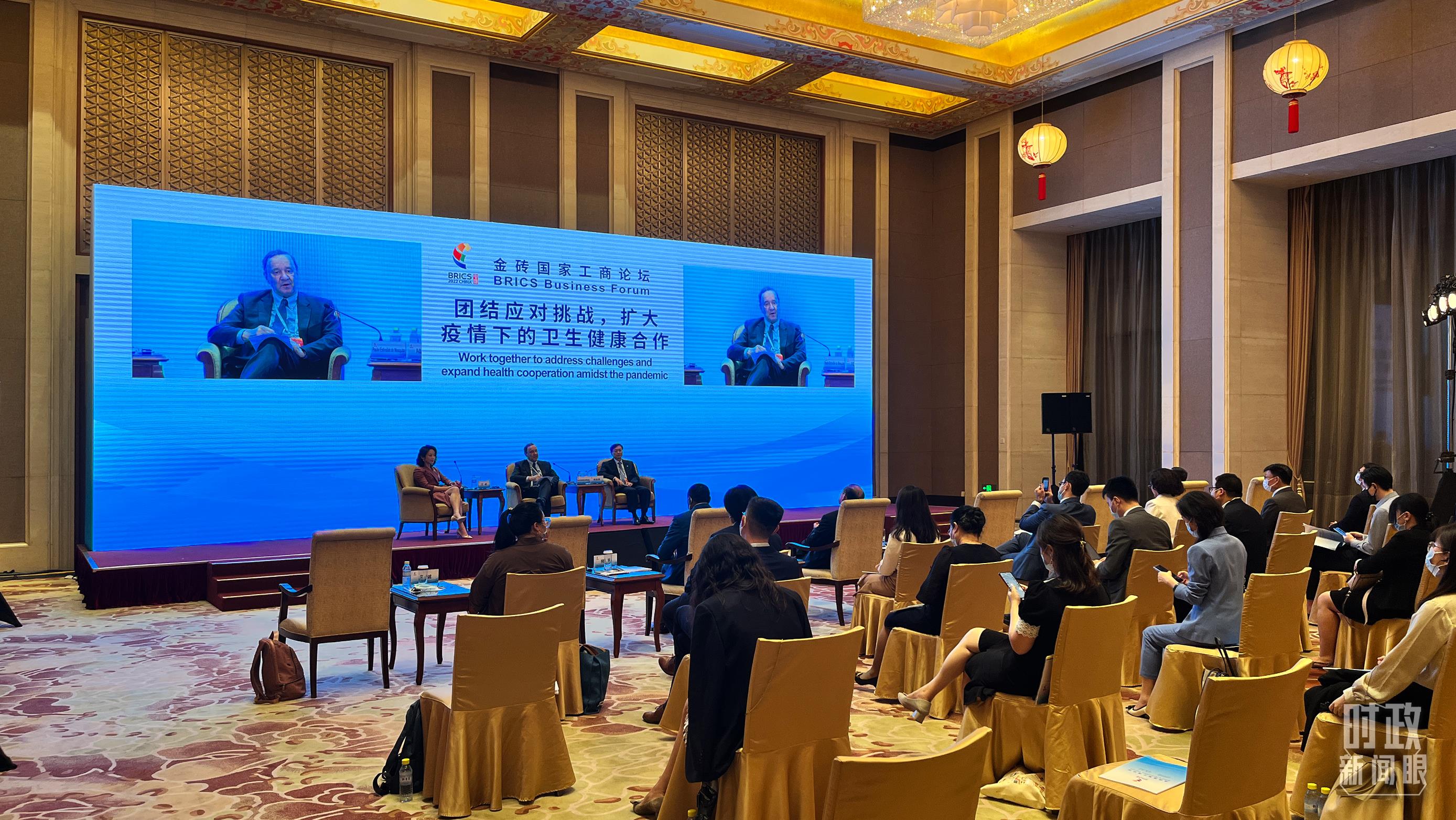 △2022年金磚國(guó)家工商論壇還設(shè)置了5個(gè)專題研討議題,這是主題為“團(tuán)結(jié)應(yīng)對(duì)挑戰(zhàn),擴(kuò)大疫情下的衛(wèi)生健康合作”專題研討分會(huì)場(chǎng)。(總臺(tái)央視記者陸泓宇拍攝)