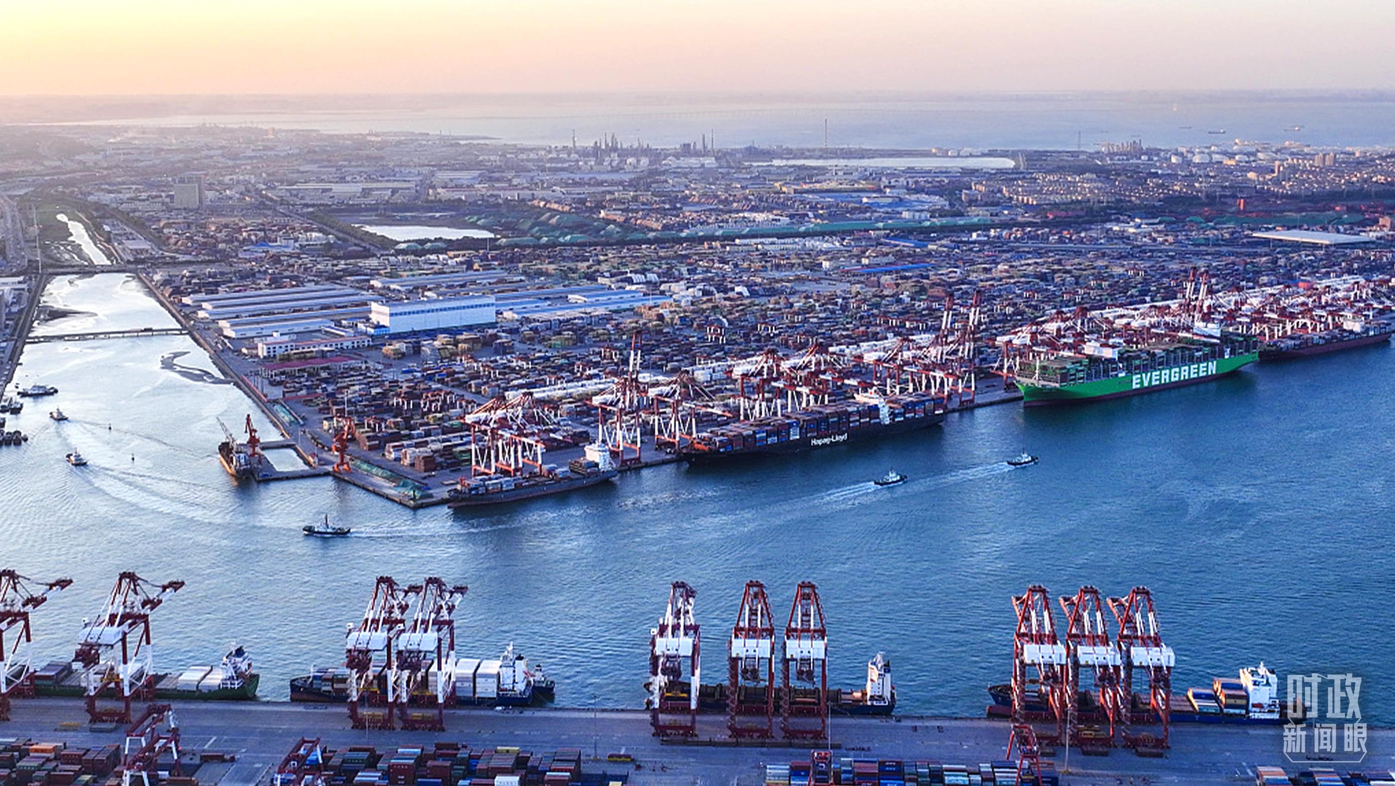 △2022年5月,山東青島港,前灣集裝箱碼頭車船如織。(圖/視覺中國(guó))