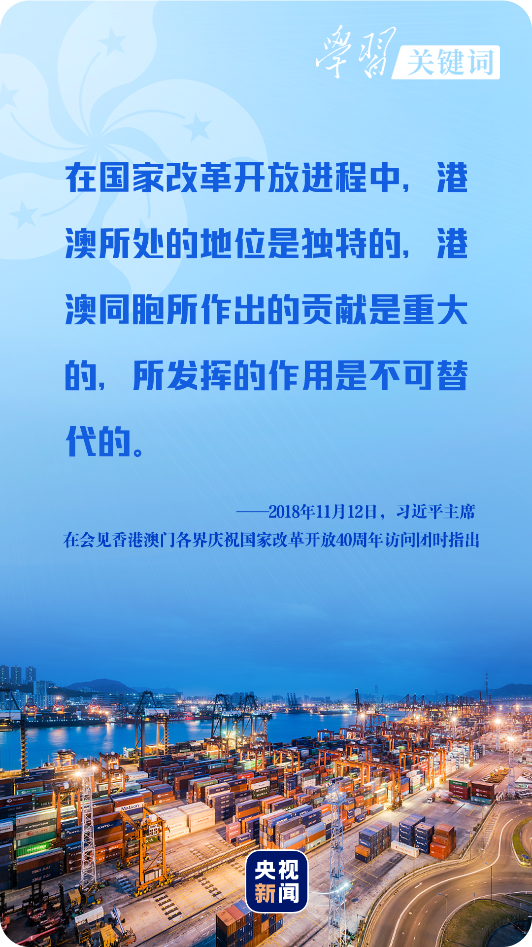 “香港背靠祖國、面向世界,有著許多有利發(fā)展條件和獨特競爭優(yōu)勢。特別是這些年國家的持續(xù)快速發(fā)展為香港發(fā)展提供了難得機遇、不竭動力、廣闊空間。”2017年7月1日,習近平主席在慶祝香港回歸祖國二十周年大會暨香港特別行政區(qū)第五屆政府就職典禮上堅定地說。