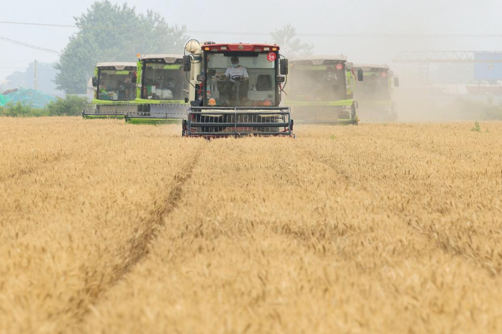 6月21日,河北省唐山市豐南區(qū)大新莊鎮(zhèn)大佟莊村,農(nóng)機(jī)手駕駛收割機(jī)搶收小麥。新華社發(fā)(李秀清攝)