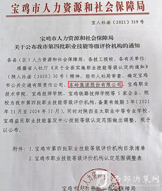 據(jù)悉,東嶺集團技能等級評價機構(gòu)在做好企業(yè)內(nèi)部技能人才評價的同時,還以職業(yè)技能等級評價機構(gòu)為依托,為寶雞市技能人才就業(yè)提供相關(guān)服務(wù)。(邱晨)