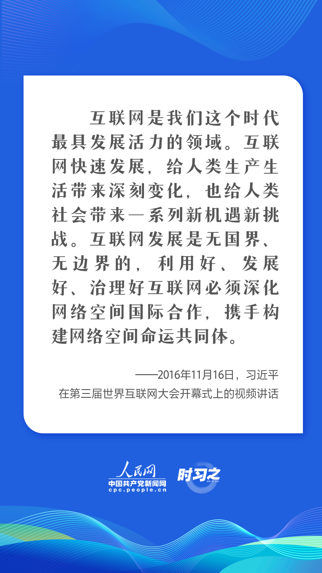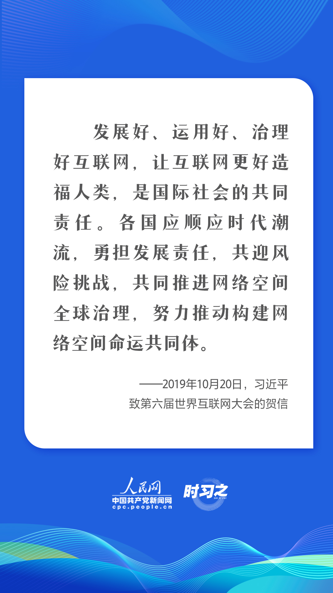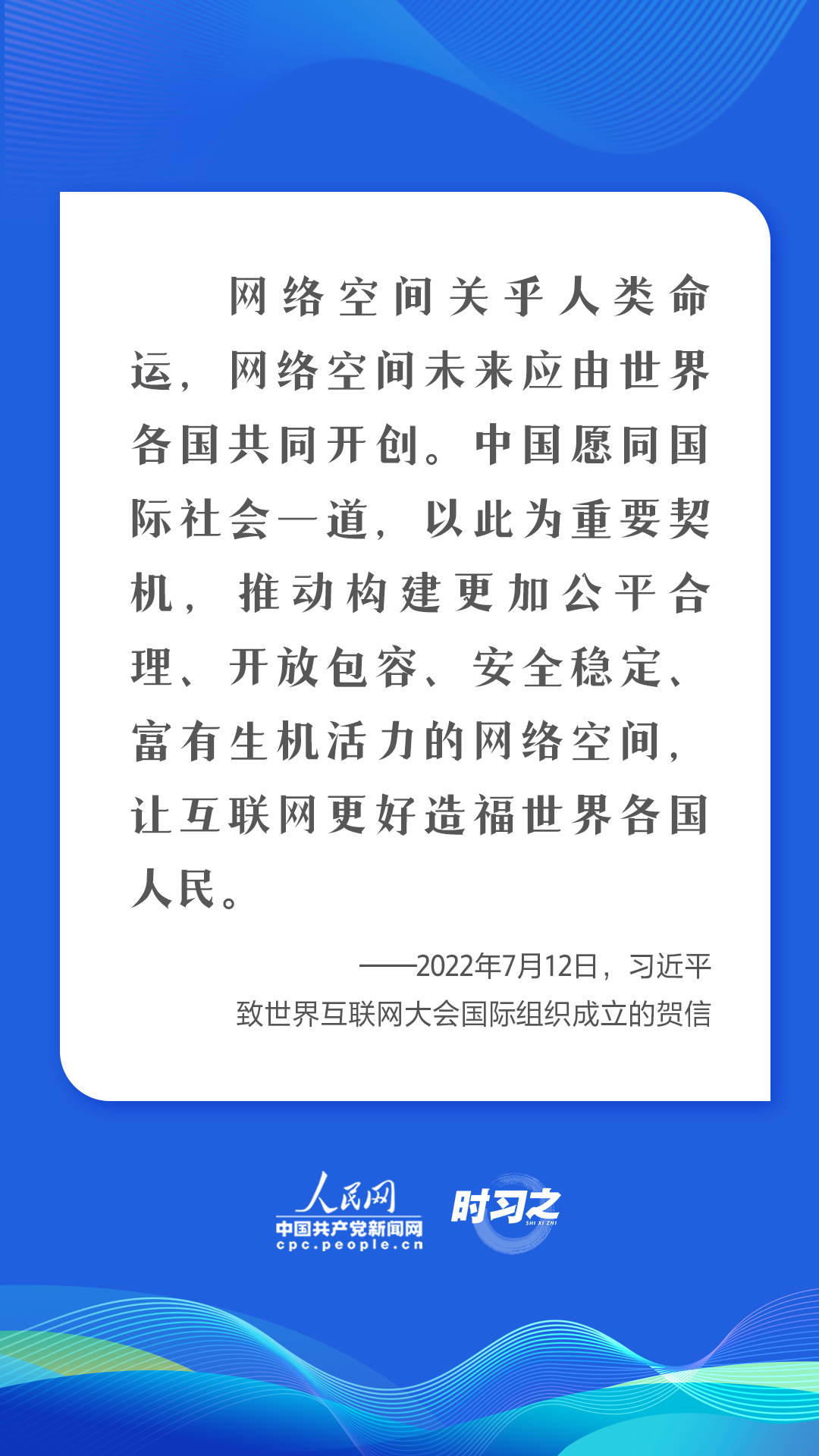 7月12日,國(guó)家主席習(xí)近平向世界互聯(lián)網(wǎng)大會(huì)國(guó)際組織成立致賀信。他強(qiáng)調(diào),網(wǎng)絡(luò)空間關(guān)乎人類(lèi)命運(yùn),網(wǎng)絡(luò)空間未來(lái)應(yīng)由世界各國(guó)共同開(kāi)創(chuàng)。這些年,習(xí)近平數(shù)次就互聯(lián)網(wǎng)發(fā)展大勢(shì)、網(wǎng)絡(luò)空間治理作出重要論述,并多次在不同場(chǎng)合發(fā)出“中國(guó)倡議”,為世界互聯(lián)網(wǎng)發(fā)展凝聚合力。