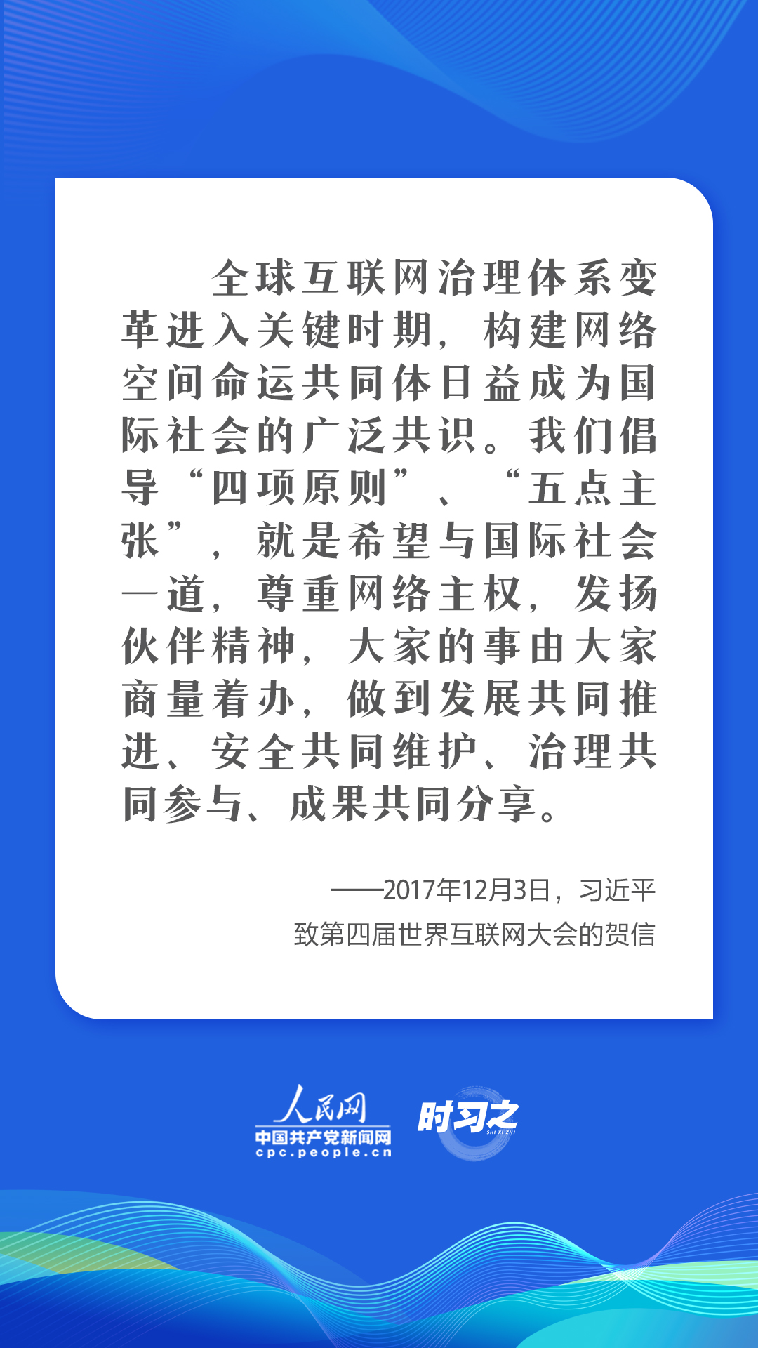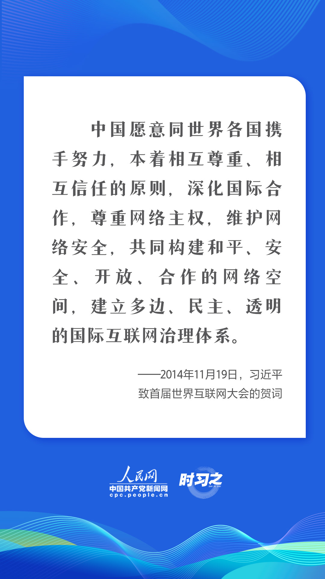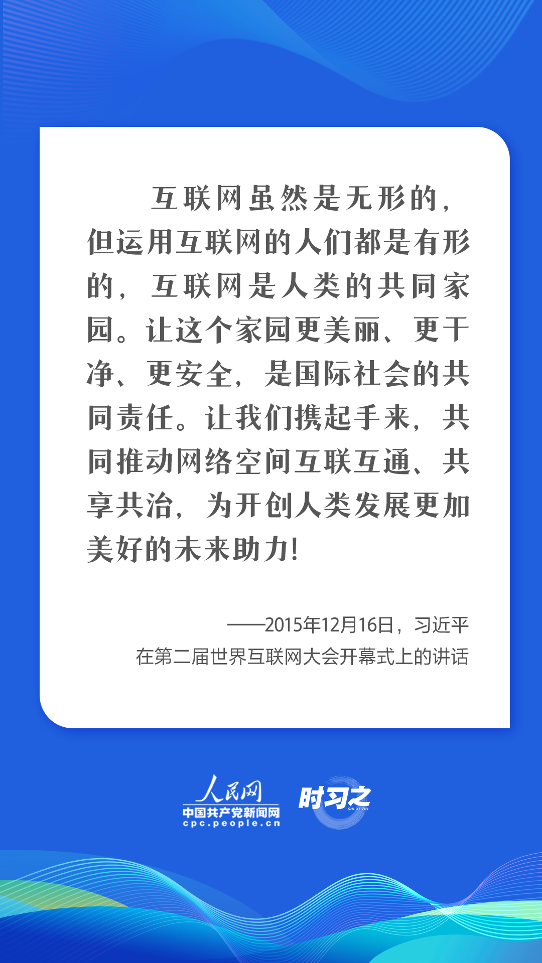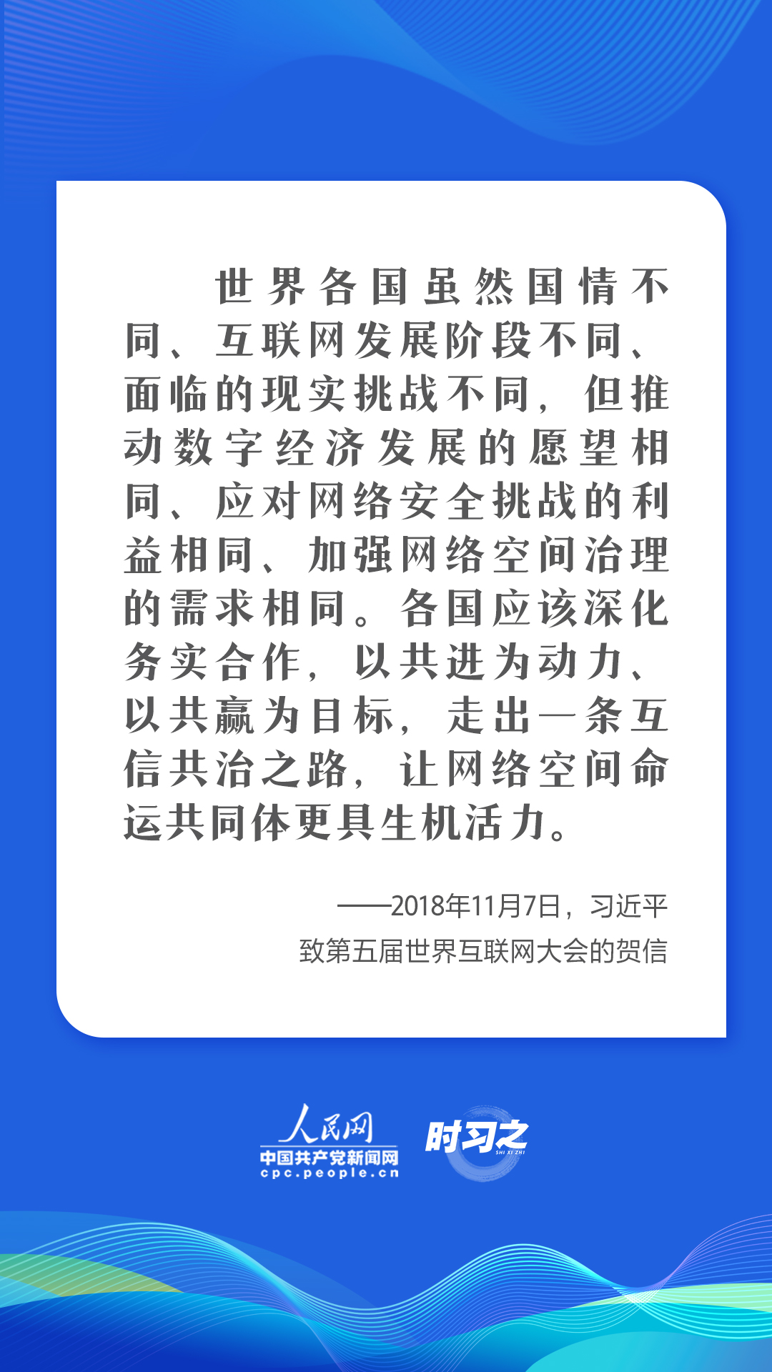 7月12日,國(guó)家主席習(xí)近平向世界互聯(lián)網(wǎng)大會(huì)國(guó)際組織成立致賀信。他強(qiáng)調(diào),網(wǎng)絡(luò)空間關(guān)乎人類(lèi)命運(yùn),網(wǎng)絡(luò)空間未來(lái)應(yīng)由世界各國(guó)共同開(kāi)創(chuàng)。這些年,習(xí)近平數(shù)次就互聯(lián)網(wǎng)發(fā)展大勢(shì)、網(wǎng)絡(luò)空間治理作出重要論述,并多次在不同場(chǎng)合發(fā)出“中國(guó)倡議”,為世界互聯(lián)網(wǎng)發(fā)展凝聚合力。