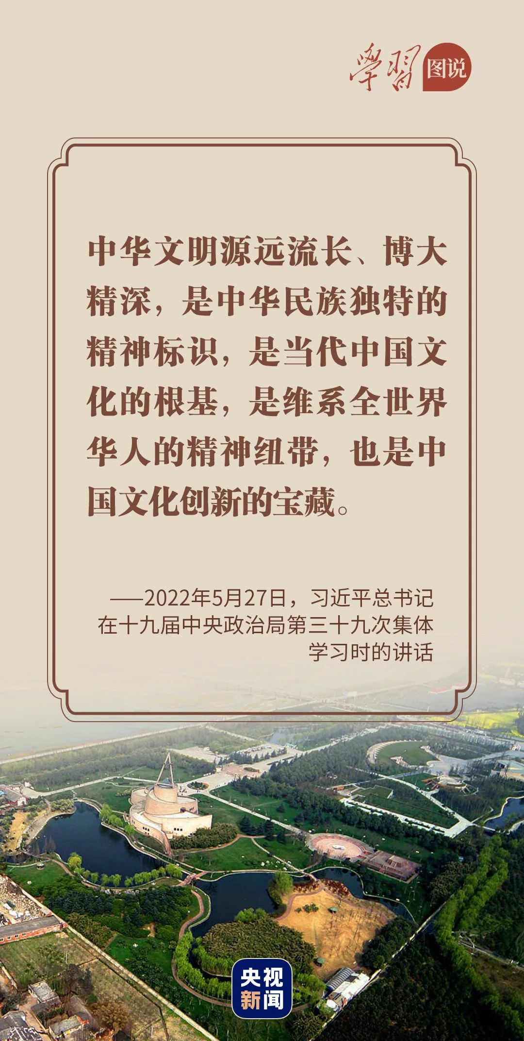 “深入了解中華文明五千多年發(fā)展史,推動(dòng)把中國(guó)文明歷史研究引向深入,推動(dòng)全黨全社會(huì)增強(qiáng)歷史自覺(jué)、堅(jiān)定文化自信,堅(jiān)定不移走中國(guó)特色社會(huì)主義道路,為全面建設(shè)社會(huì)主義現(xiàn)代化國(guó)家、實(shí)現(xiàn)中華民族偉大復(fù)興而團(tuán)結(jié)奮斗。”
