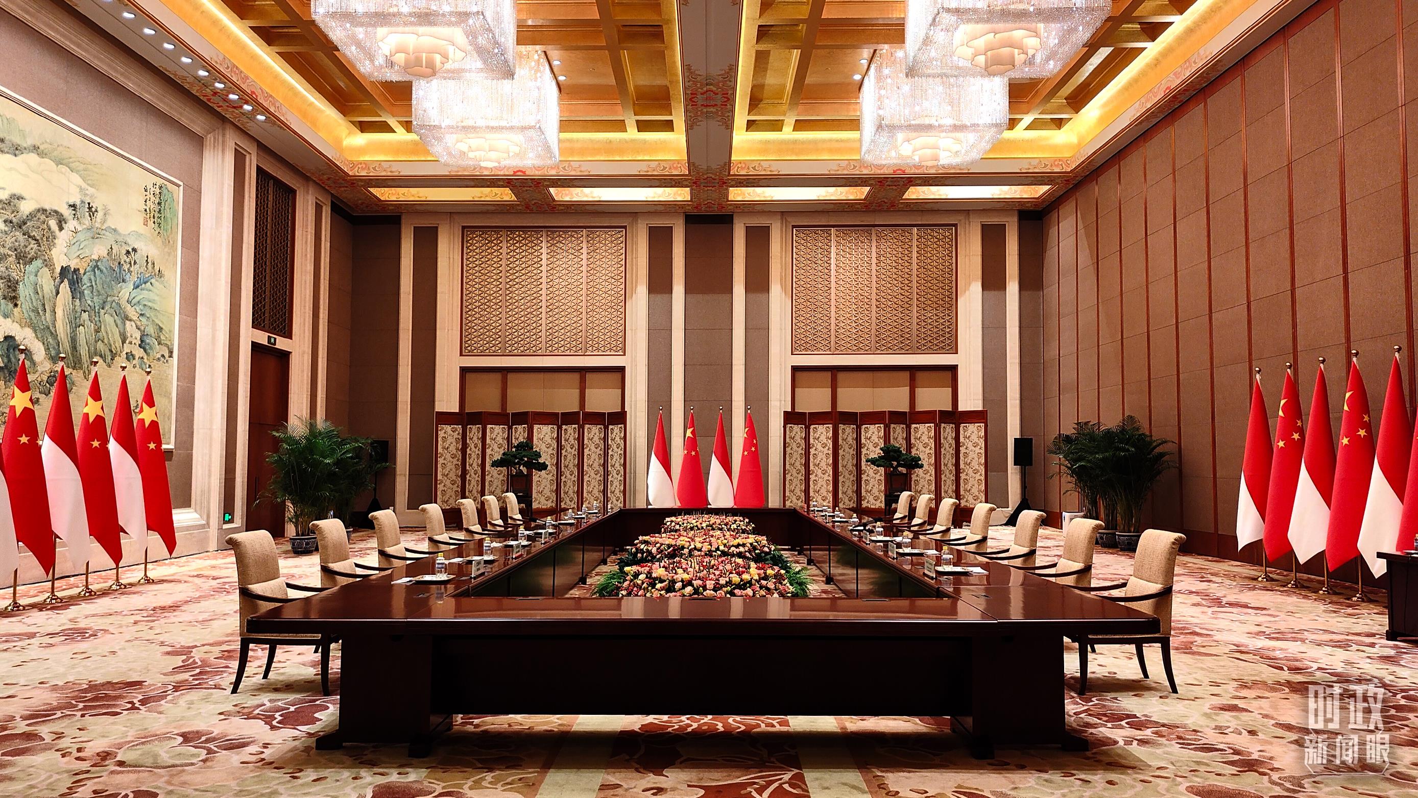 △會(huì)談開始前的現(xiàn)場。(總臺央視記者楊立峰拍攝)