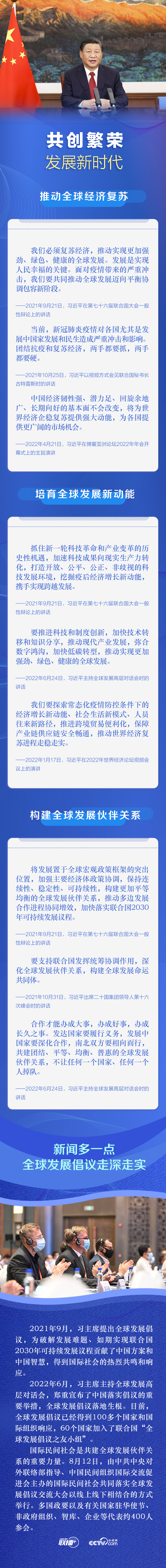 8月12日,習(xí)近平主席向國際民間社會共同落實(shí)全球發(fā)展倡議交流大會致賀信,深刻闡述了發(fā)展的重要意義。習(xí)主席呼吁“國際社會應(yīng)不斷凝聚促進(jìn)發(fā)展的強(qiáng)大共識,努力營造有利于發(fā)展的國際環(huán)境”,并再次表明中國愿同各方攜手努力謀發(fā)展的誠意和決心。