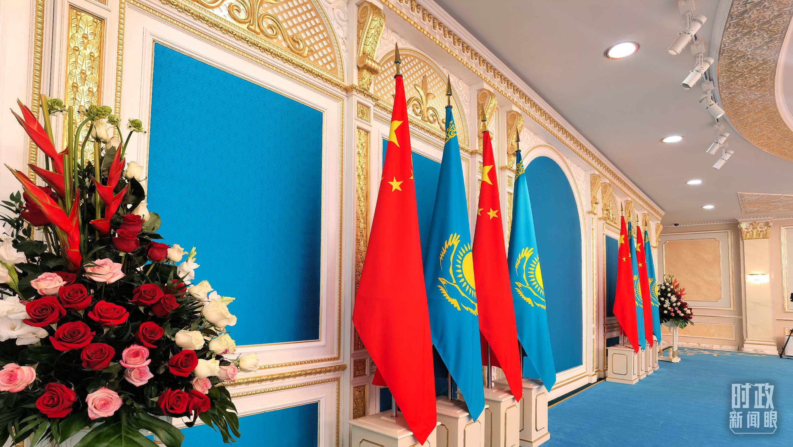 △哈薩克斯坦首都升起中哈兩國(guó)國(guó)旗。(總臺(tái)央視記者魏子鈞拍攝)