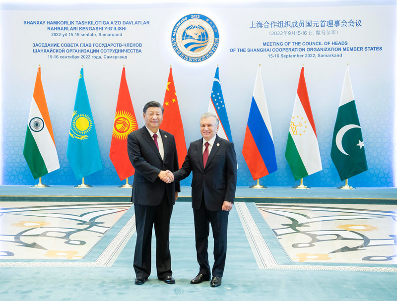 習(xí)近平在發(fā)言中高度評(píng)價(jià)烏茲別克斯坦擔(dān)任輪值主席國期間,在籌備撒馬爾罕峰會(huì)等活動(dòng)、推動(dòng)本組織發(fā)展方面作出積極努力和重要貢獻(xiàn)。