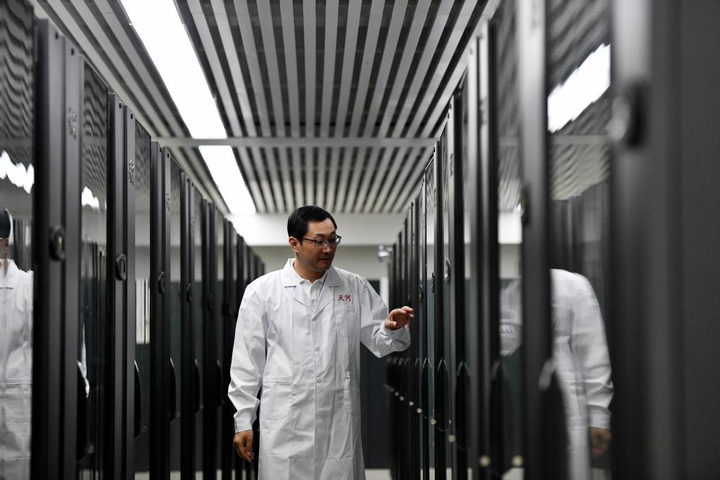 在國家超級計算天津中心“天河一號”機房內(nèi),孟祥飛在查看設備運行狀態(tài)(2021年5月27日攝)。新華社記者 趙子碩 攝