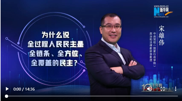 十年非凡成就,蘊藏深刻啟示。如何用中國理論闡釋中國實踐?新華網聯(lián)合中央黨校(國家行政學院)國家高端智庫,推出“思客講堂·黨校公開課(第三季)”《以“理”服人:十年的十個“為什么”》。十位黨校青年教師通過十集理論短視頻,帶你探究非凡成就背后的“中國密碼”。本期讓我們跟隨中央黨校(國家行政學院)政法教研部教授宋雄偉,感受全過程人民民主在中國的生動實踐。