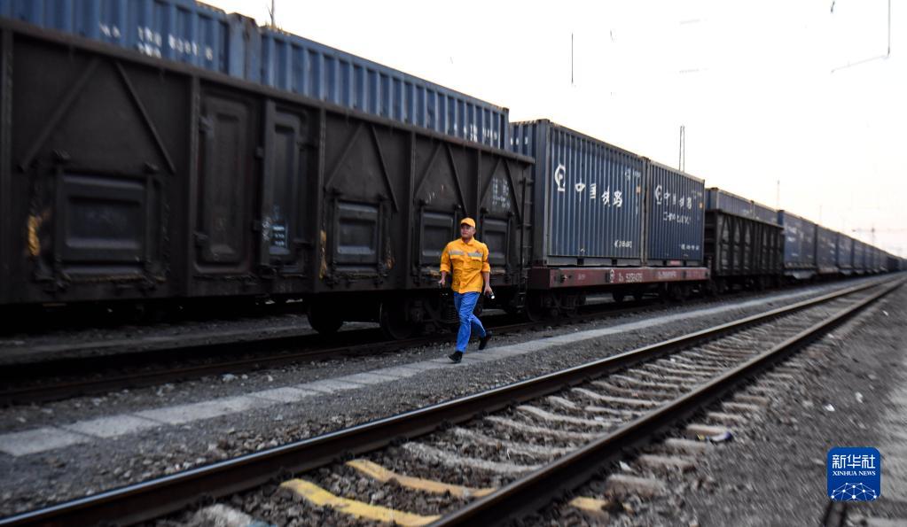 10月16日,在中國鐵路南寧局集團有限公司欽州港站,檢車工長林江波走在去接班的路上。新華社記者 張愛林 攝