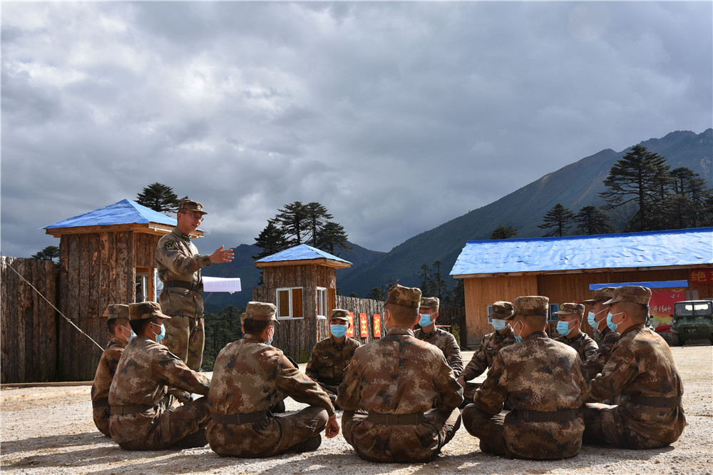 10月17日,西藏林芝軍分區(qū)“墨脫戍邊模范營”組織官兵學(xué)習(xí)黨的二十大報(bào)告。新華社發(fā)(游毅 攝)