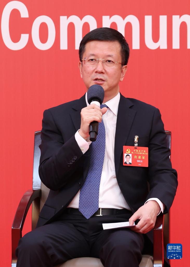 10月20日,中國(guó)共產(chǎn)黨第二十次全國(guó)代表大會(huì)新聞中心舉行集體采訪。青海、寧夏、新疆、中央和國(guó)家機(jī)關(guān)、中央金融系統(tǒng)、中央企業(yè)系統(tǒng)(在京)代表團(tuán)新聞發(fā)言人出席,介紹代表團(tuán)學(xué)習(xí)討論二十大報(bào)告情況,并回答記者提問。新華社記者 張玉薇 攝