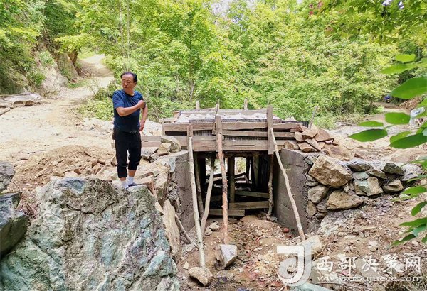 寧強縣陽平關(guān)鎮(zhèn)伍家壩村第一書記唐賢斌冒著酷暑在查看修建便民橋。