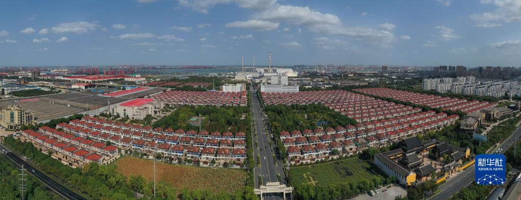 這是10月17日拍攝的江蘇江陰長江村村貌(無人機照片)。新華社記者 季春鵬 攝