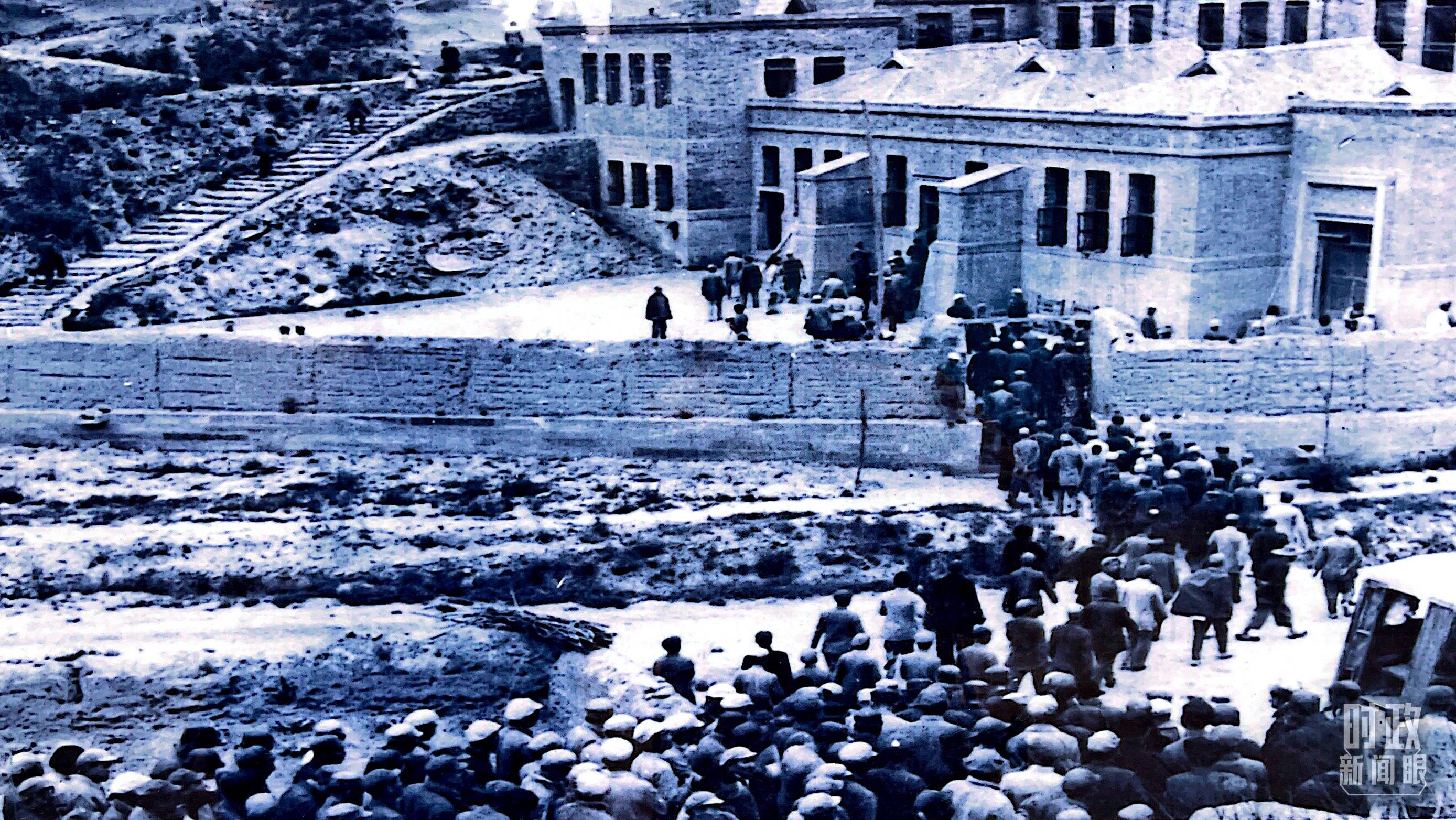 △中共七大代表進(jìn)入會(huì)場(chǎng)的老照片。(總臺(tái)央視記者盧心雨提供)