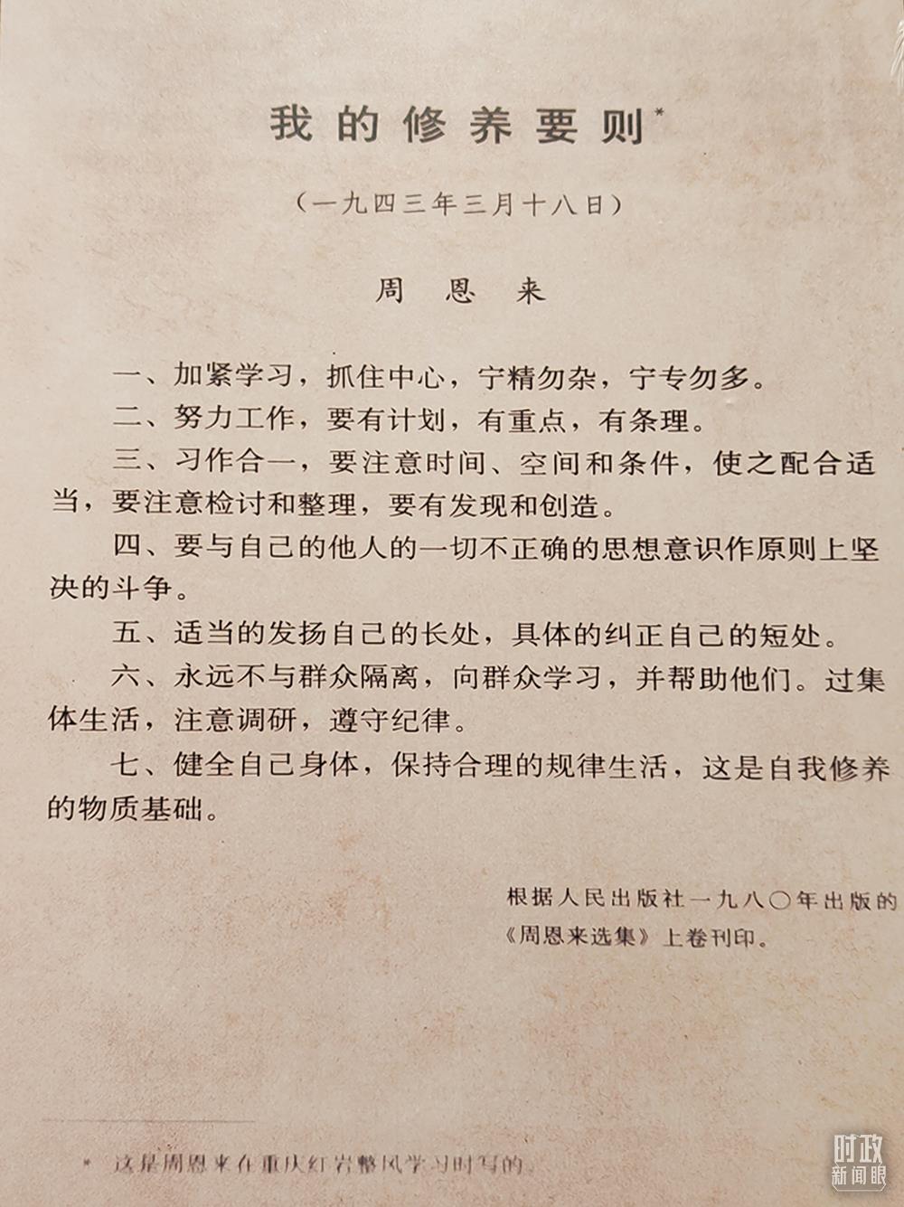 △周恩來所寫《我的修養(yǎng)要?jiǎng)t》。(總臺(tái)央視記者彭漢明拍攝)