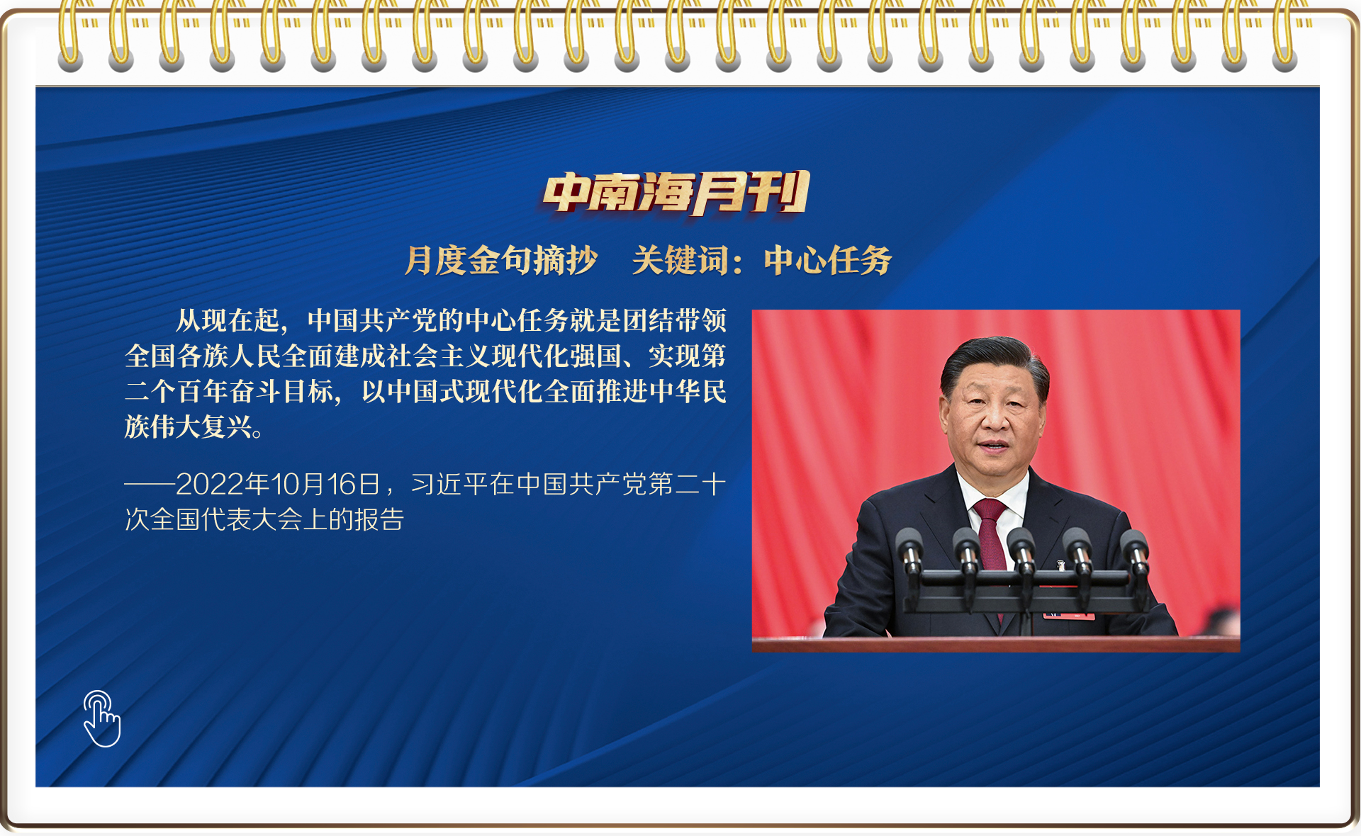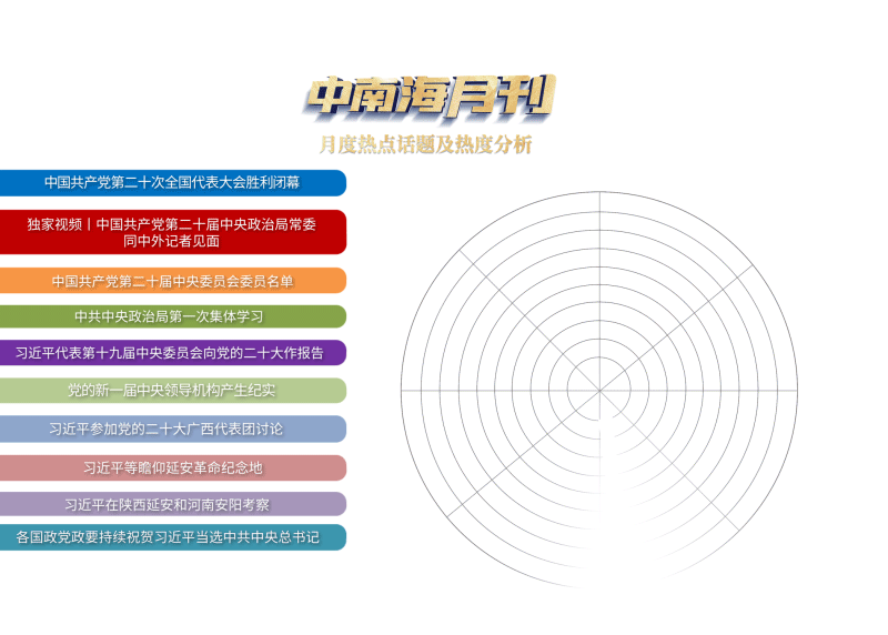 代表第十九屆中央委員會向黨的二十大作報告、參加黨的二十大廣西代表團討論、同中外記者見面、主持新一屆中央政治局第一次集體學(xué)習(xí)、帶領(lǐng)新一屆中央政治局常委赴陜西延安瞻仰延安革命紀(jì)念地、同黨的二十大后首位應(yīng)邀訪華的外國領(lǐng)導(dǎo)人——越共中央總書記阮富仲舉行會談……十月,習(xí)近平總書記的日程一如既往,緊湊又繁忙。