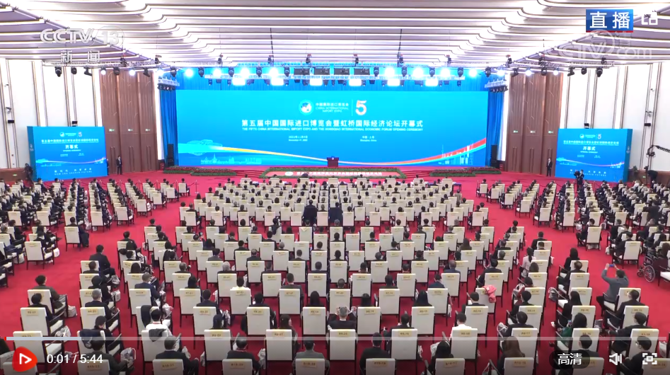 11月4日晚,國家主席習(xí)近平以視頻方式出席在上海舉行的第五屆中國國際進(jìn)口博覽會(huì)開幕式并發(fā)表題為《共創(chuàng)開放繁榮的美好未來》的致辭。