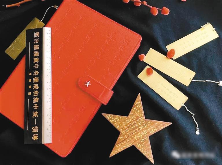 文創(chuàng)精品“紅寶”套裝,包括筆記本、便簽夾、直尺、金屬書簽和紙膠帶等五件產品。此套文創(chuàng)產品榮獲國家知識產權局頒發(fā)的國家外觀設計專利證書,“紅”字代表“紅軍”“紅色圣地”,“寶”字代表“中國革命之瑰寶”。紅寶用現(xiàn)代語言講述紅色故事,強化紅色文化,傳承紅色精神。以新時代背景下的紅色精神號召全民堅定意志,勇往直前,為實現(xiàn)中華民族偉大復興的中國夢而不懈奮斗。