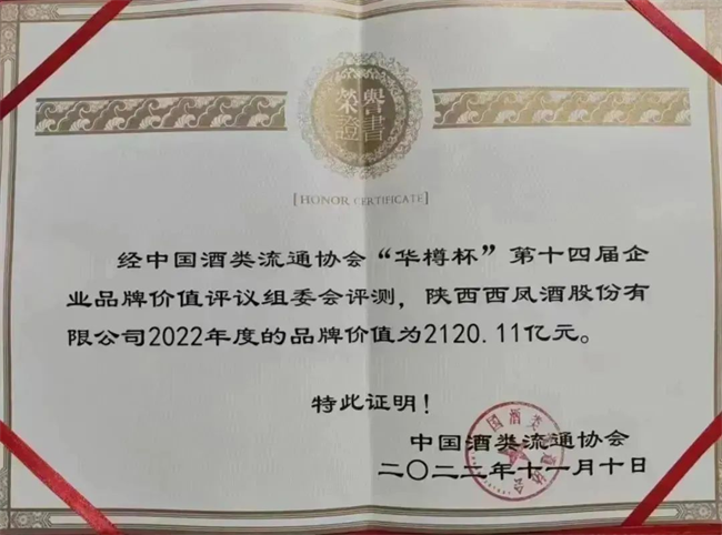 西部決策網訊(記者艾米杰 韓宗憲 通訊員 彭靜宜 張桓瑞)2022年11月10日,“華樽杯”第十四屆中國酒類企業(yè)品牌價值暨第五屆國際酒類產品品牌價值發(fā)布會在貴陽舉行。西鳳酒以2120.11億元的品牌價值名列中國白酒品牌榜前列,被授予“中國最受歡迎鳳香型白酒品牌”“全球烈酒十強品牌”“中國陜西省白酒品牌價值第一名”等多項榮譽。西鳳酒從首屆“華樽杯”的69.23億元到如今的2120.11億元,14年間,西鳳品牌價值增長31倍。“紅西鳳”榮獲2022年度“華樽杯”最受歡迎鳳香型白酒品牌,2022年度品牌價值高達1228.78億元。