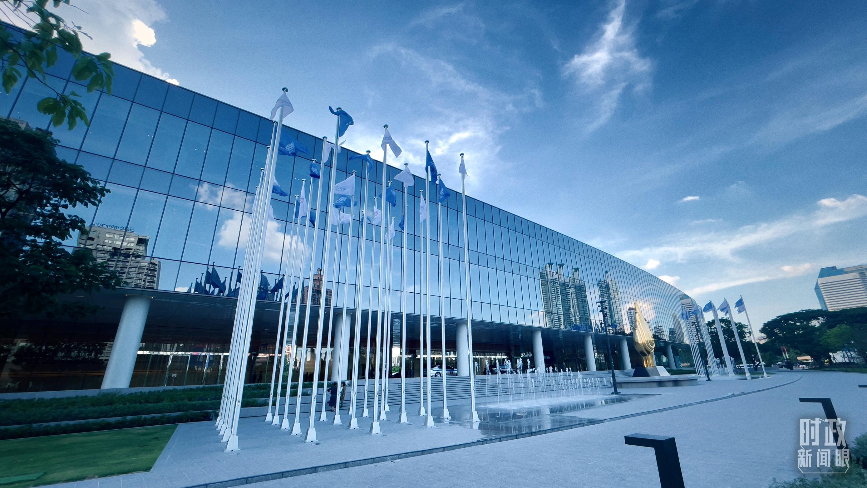 △泰國曼谷,詩麗吉王后國家會議中心,亞太經(jīng)合組織第二十九次領(lǐng)導(dǎo)人非正式會議在這里舉行。(總臺央視記者鄂介甫拍攝)