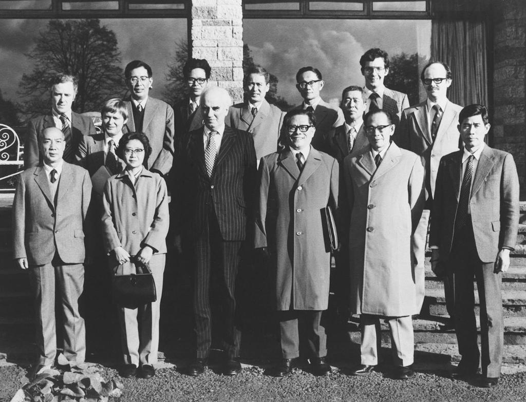 1964年6月,江澤民同志(二排右一)在法國艾克斯萊班出席國際電工委員會(huì)會(huì)議期間同與會(huì)代表合影。新華社發(fā)