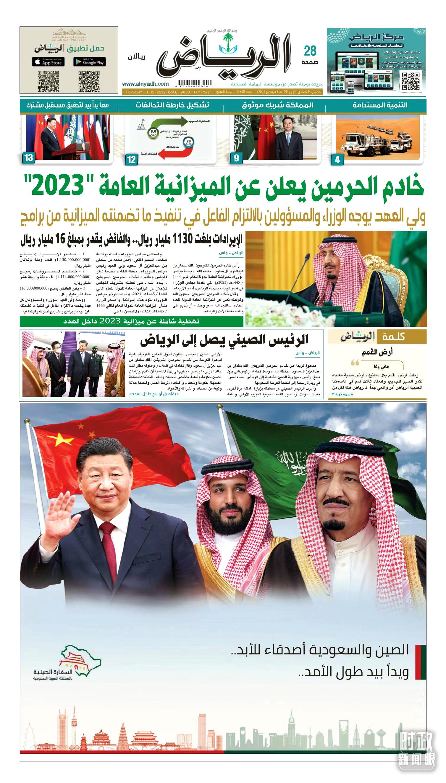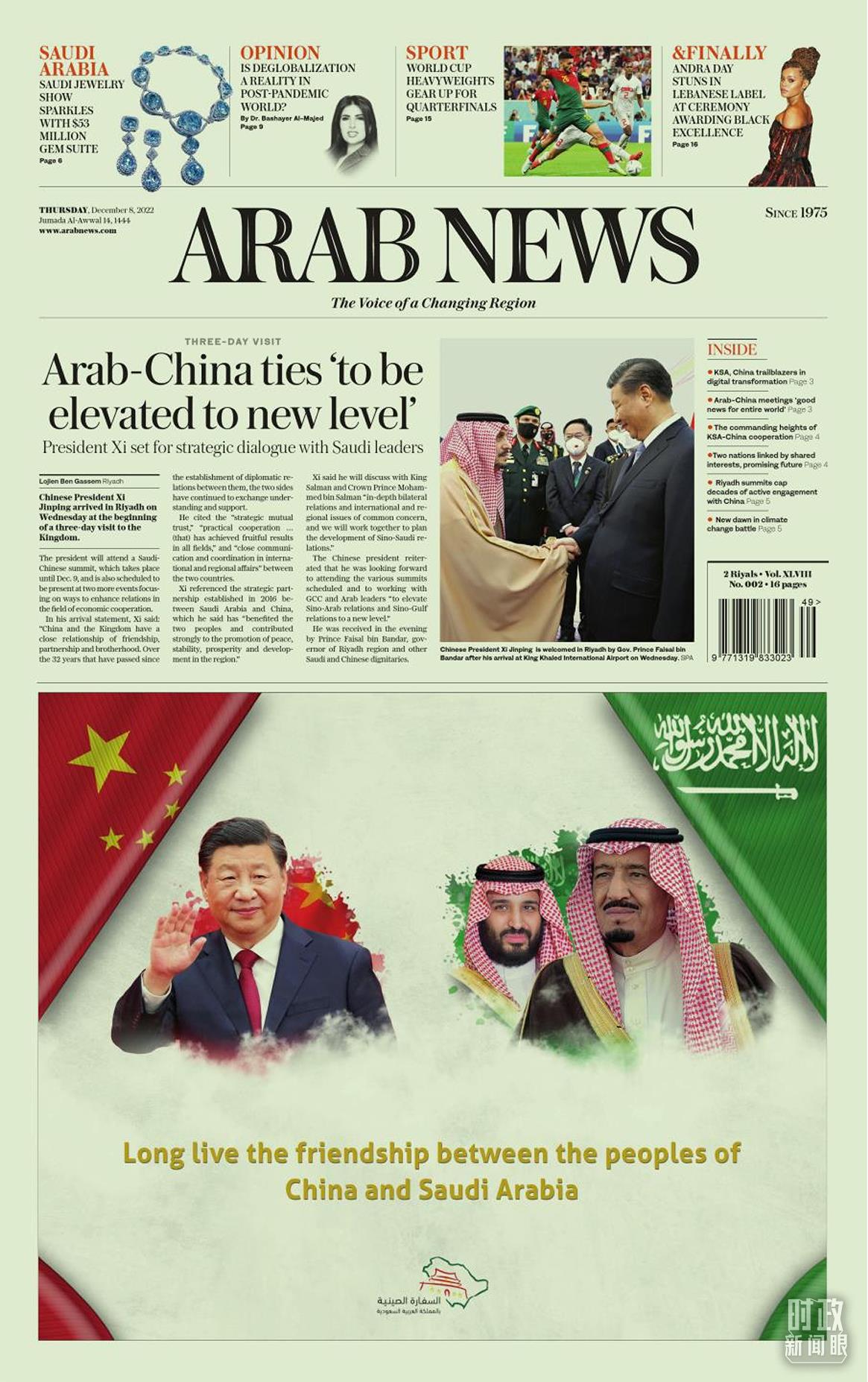△沙特主流媒體頭版對(duì)習(xí)主席訪沙進(jìn)行報(bào)道。