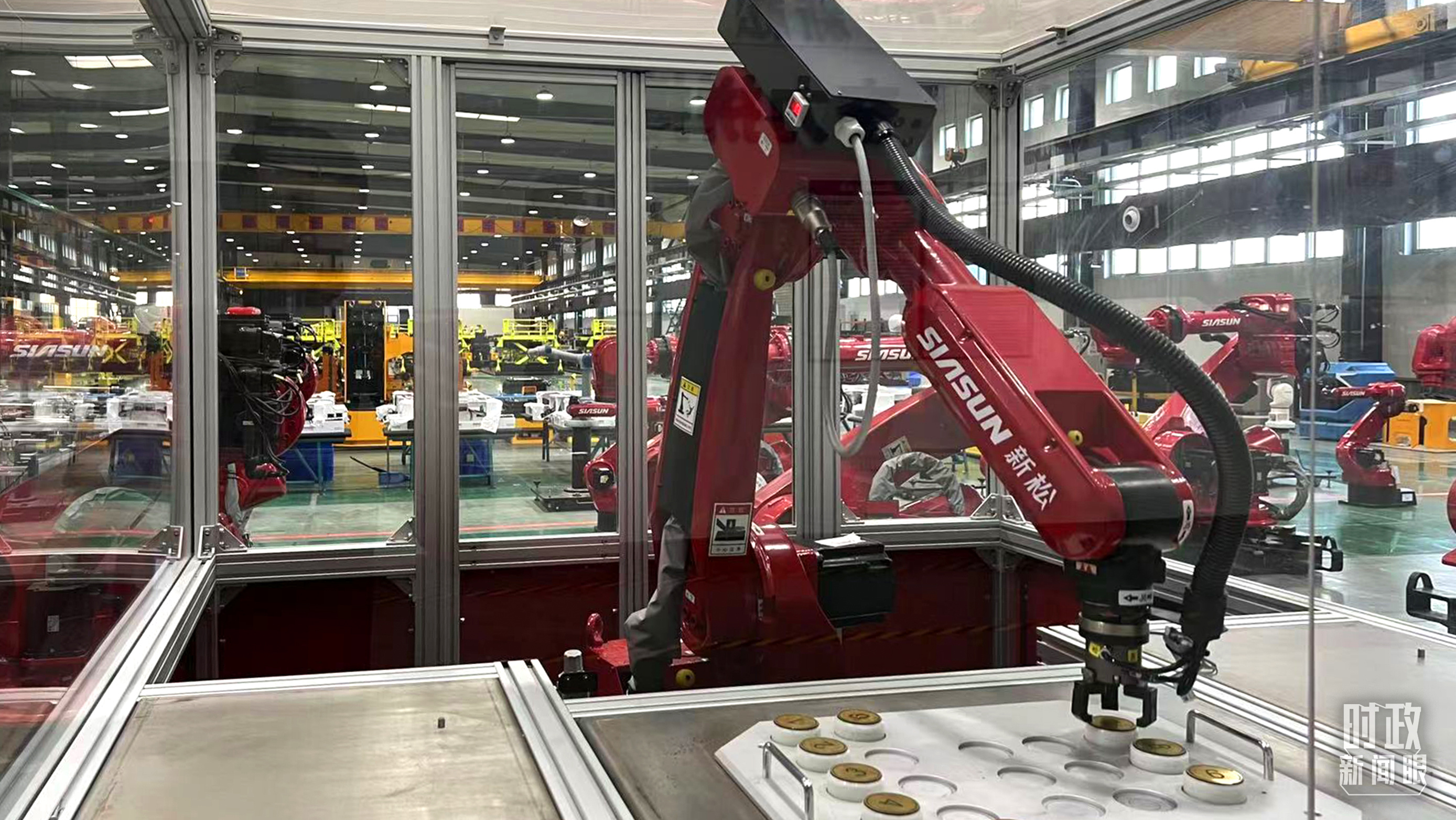 △沈陽新松機器人自動化股份有限公司生產(chǎn)車間。(總臺央視記者趙化拍攝)