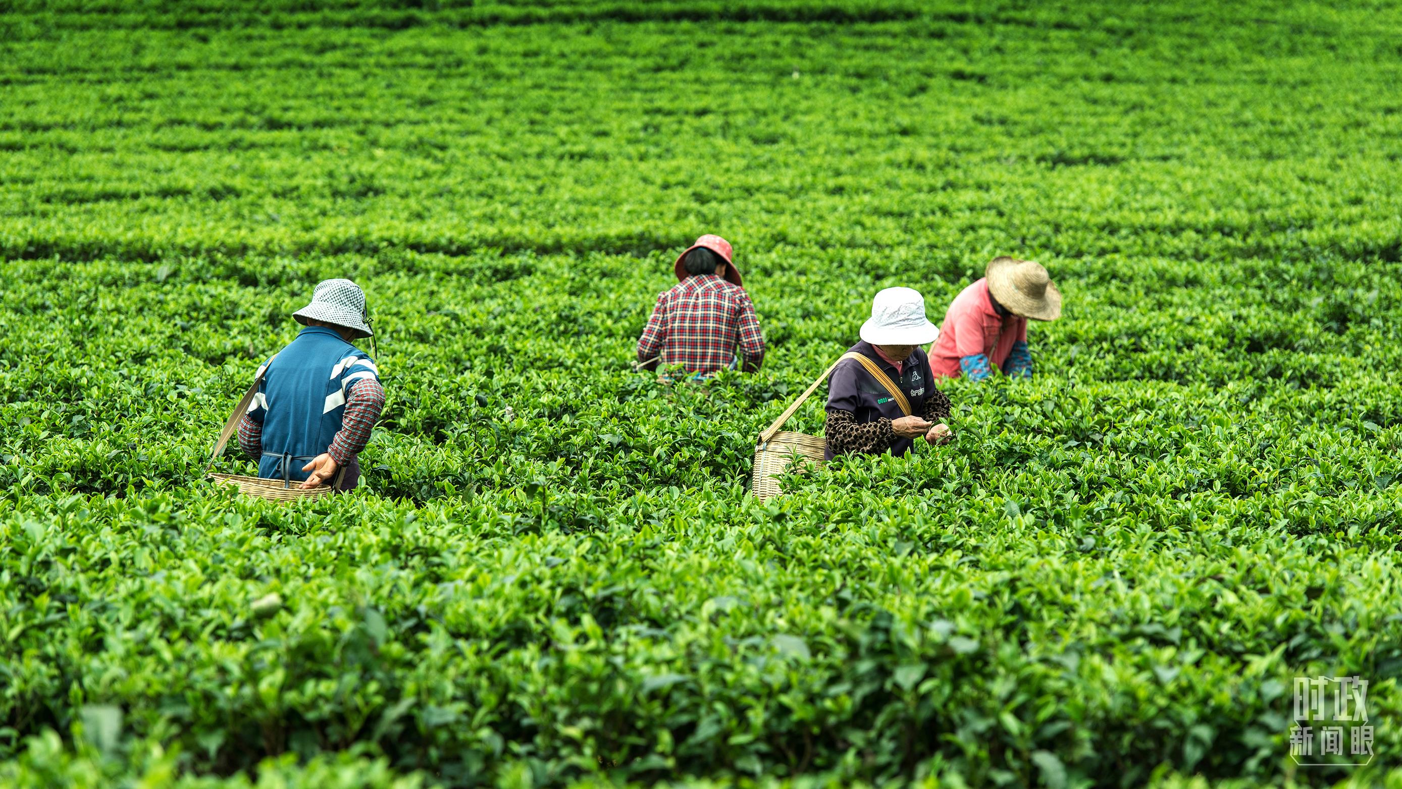 △廣東省英德市的一處茶園,茶農(nóng)們正在采茶。(圖/視覺中國)