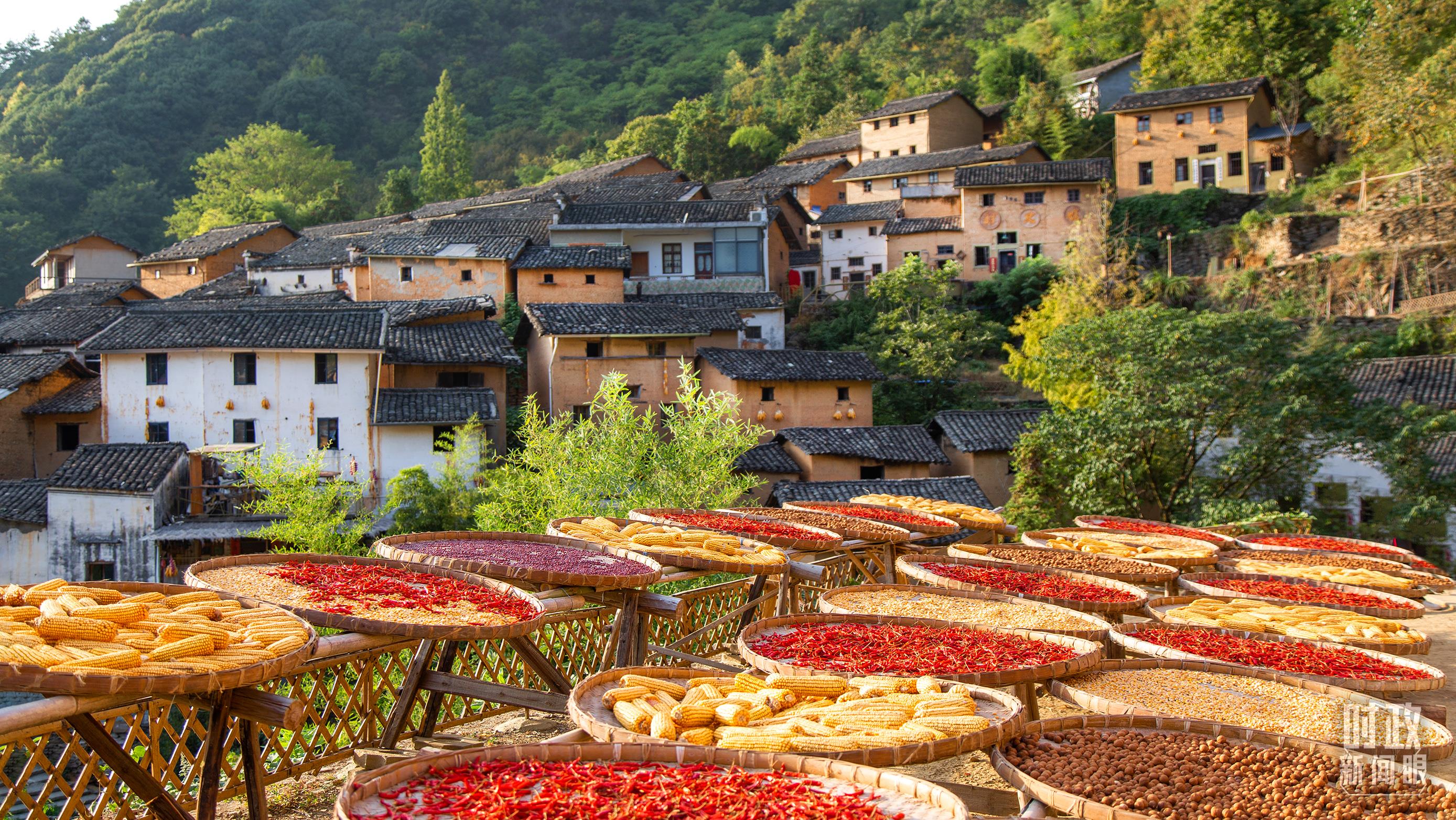 △安徽歙縣“陽產(chǎn)土樓”的“曬秋”景象。(圖/視覺中國)