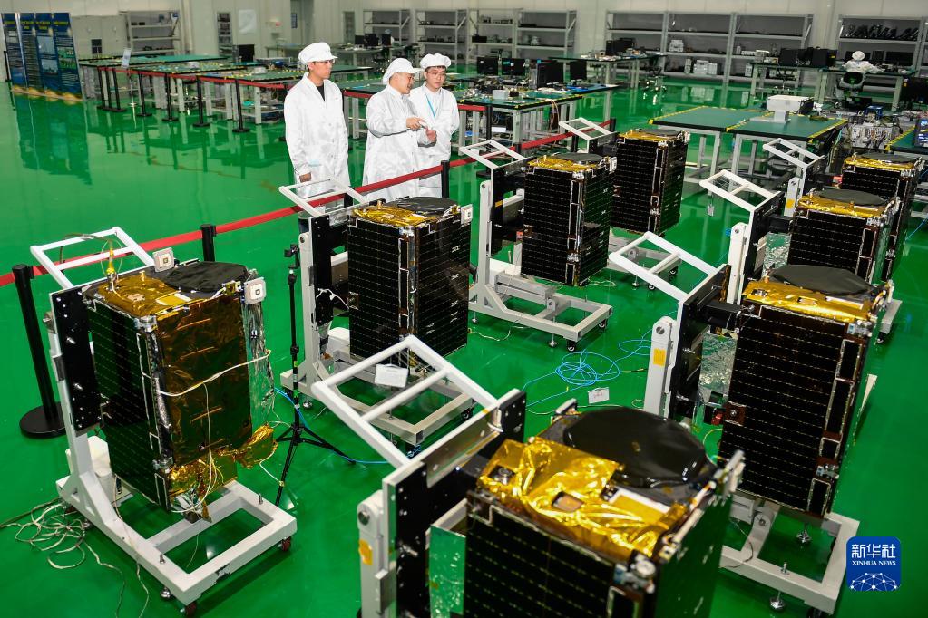 在吉林長春,長光衛(wèi)星技術(shù)股份有限公司科研人員在衛(wèi)星總裝測試大廳進行相關(guān)測試工作 (2022年10月17日攝)。新華社記者 許暢 攝