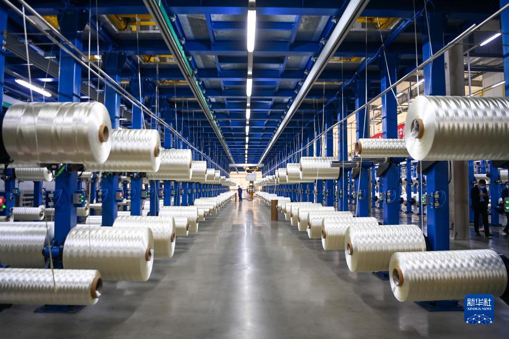 在吉林化纖集團國興碳纖維公司生產(chǎn)車間,工人在整理碳纖維原絲(2022年10月31日攝)。新華社記者 顏麟蘊 攝