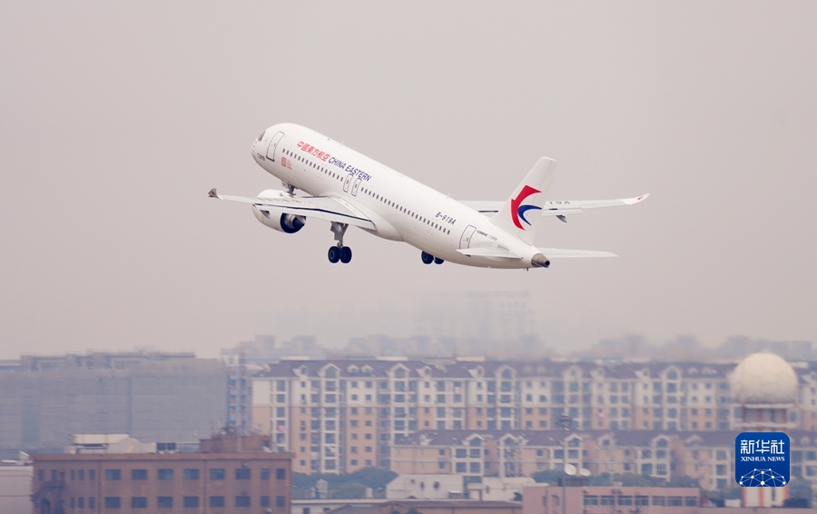2022年12月26日,國產(chǎn)大飛機C919在上海虹橋國際機場起飛。 當(dāng)日,國產(chǎn)大飛機C919交付東航的全球首架機的首班驗證飛行開啟,從上海虹橋國際機場飛往北京首都國際機場。 新華社發(fā)
