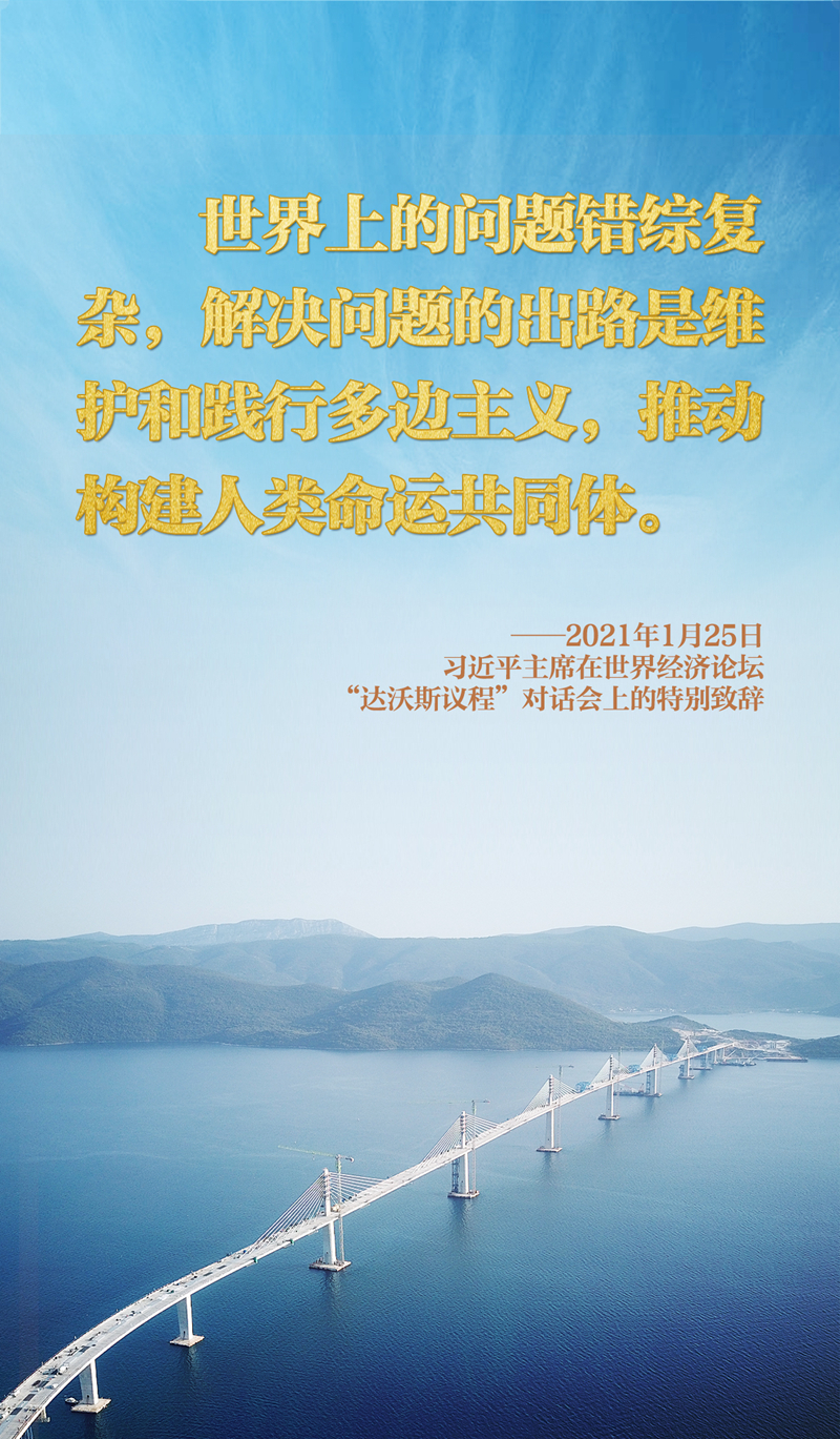 “我們今天所作的每一個(gè)抉擇、采取的每一項(xiàng)行動(dòng),都將決定世界的未來。”一次次深刻闡述,一次次真誠呼吁,習(xí)近平主席在達(dá)沃斯論壇發(fā)出的聲音穿越時(shí)空,為解決人類面臨的共同問題貢獻(xiàn)智慧與力量,為變亂交織的世界提供寶貴的確定性和穩(wěn)定性。新時(shí)代中國將與世界上一切進(jìn)步力量一道,堅(jiān)定維護(hù)和踐行多邊主義,向著構(gòu)建人類命運(yùn)共同體的正確方向,讓和平與發(fā)展的陽光普照大地,攜手開創(chuàng)更加美好的未來。