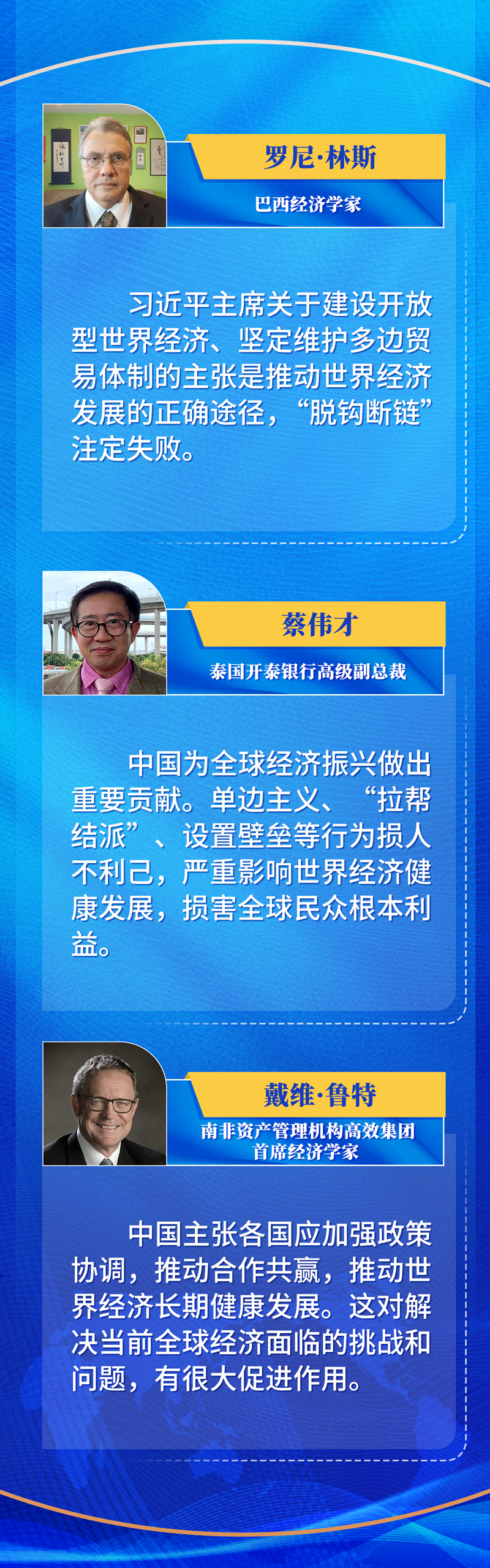 堅(jiān)持拆墻而不筑墻、開放而不隔絕、融合而不脫鉤,推動(dòng)構(gòu)建開放型世界經(jīng)濟(jì),才能將世界經(jīng)濟(jì)帶出低谷。