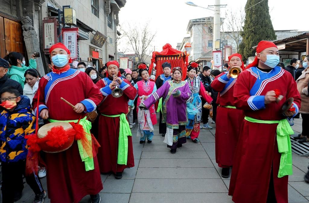 1月23日大年初二12:06,首批乘坐“韓城過大年”定制列車的400多名游客抵達韓城,走進史圣故里,感受古城悠久的文化底蘊和不一樣的韓城年味。游客們沿著新開辟的“古城環(huán)線游”線路,依次游覽古城三廟、民俗博物館,欣賞非遺展覽,在古城美食街品嘗當(dāng)?shù)孛朗?。行走在古城,社火、秧歌、踩高蹺…… 各色非遺表演精彩紛呈,游客們紛紛拿出手機留下精彩的瞬間,抱起孩子共享這難得的歡樂時光,體驗這里濃濃的年味。