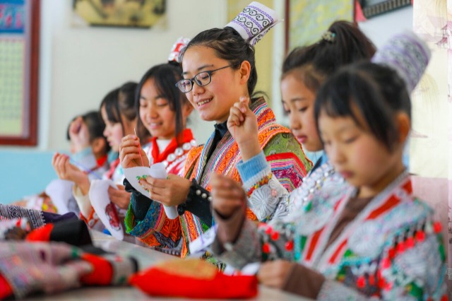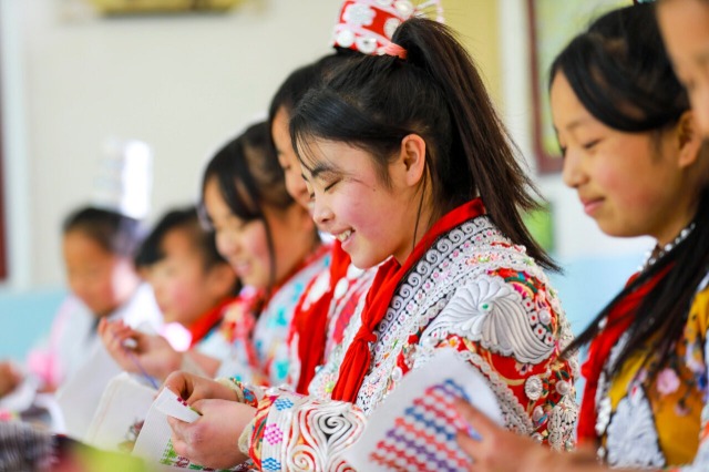 近年來,貴州省黔西市新仁苗族鄉(xiāng)折溪小學(xué)積極推動優(yōu)秀非遺文化進(jìn)課堂,選任學(xué)校精通刺繡、蠟畫、蠟染的教師指導(dǎo)學(xué)生學(xué)習(xí),讓苗族孩子們“零距離”接觸非遺技藝,弘揚(yáng)和傳承民族優(yōu)秀傳統(tǒng)文化。中國教育報-中國教育新聞網(wǎng)通訊員 周訓(xùn)超 攝