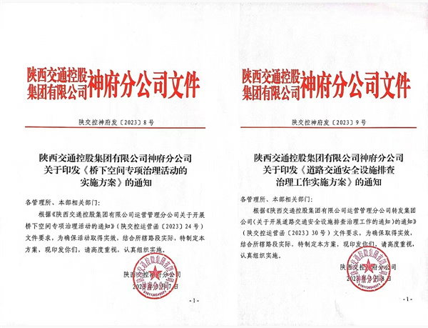 一、制定行動方案,強化組織領導。神府分公司按照上級工作要求,結合所轄道路實際,分別制定了《道路交通安全設施排查治理工作實施方案》、《橋下空間專項治理活動實施方案》,成立領導小組,明確任務分工,層層壓實責任,確保專項行動順利開展。
