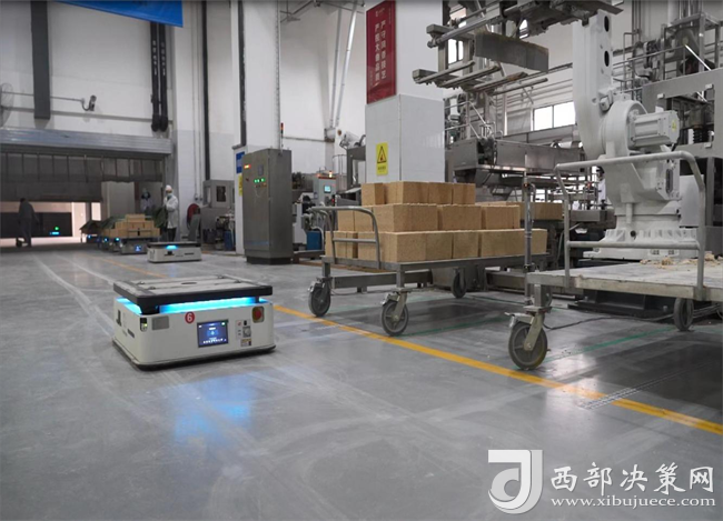 “駛?cè)搿㈨斊?、旋轉(zhuǎn)、前進(jìn)……”一走進(jìn)西鳳酒智能化技改701制曲車間,記者就看到一個個散發(fā)著科技光輝的“板車寶寶”穿梭在車間的運(yùn)輸通道上,有條不紊地進(jìn)行著曲塊運(yùn)輸工作。