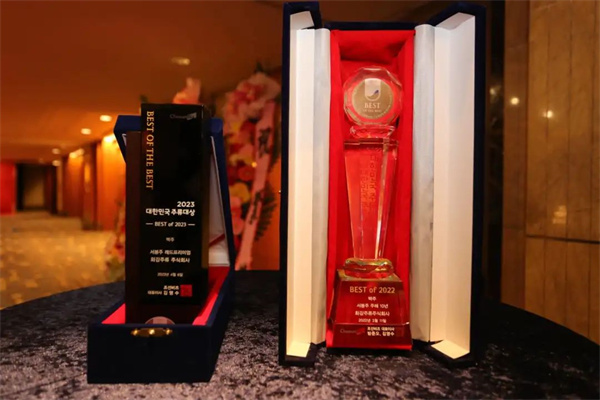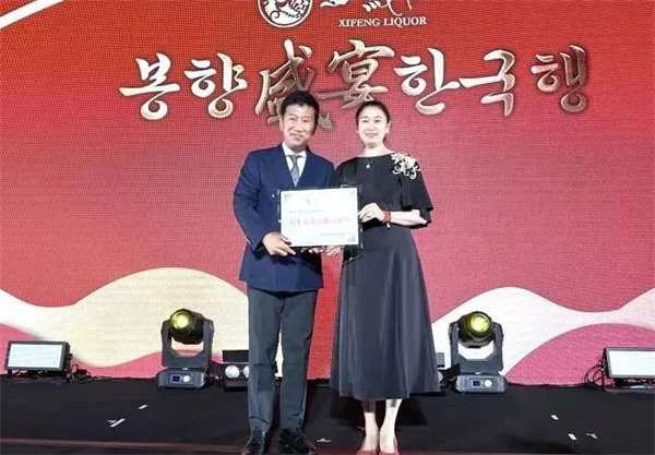 自進入韓國市場以來,西鳳酒以大氣雅致的包裝、卓越優(yōu)秀的品質(zhì)、醇香甘美的口感贏得了廣大消費者的喜愛,銷售業(yè)績連年翻倍增長,并連續(xù)兩年榮獲“韓國酒類鑒賞大賽”特等獎及“Best of 2023”大獎。會上,陜西西鳳酒股份有限公司副總經(jīng)理、營銷公司總經(jīng)理周艷花為韓國華岡酒業(yè)株式會社頒發(fā)“海外拓展獎”,對金嵐洙社長及其團隊為西鳳酒市場拓展所做出的的努力表示感謝。