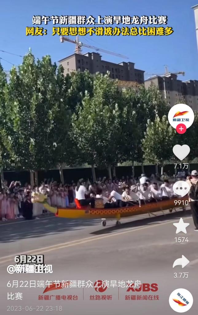 黃土高原的干旱土地里,“撐著走”的各類旱地龍舟賽,與江南水鄉(xiāng)一樣,充滿了氣勢與歡樂,網(wǎng)友妙評說:“這些快樂里沒有一點水分!”