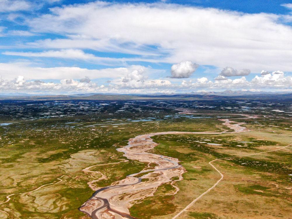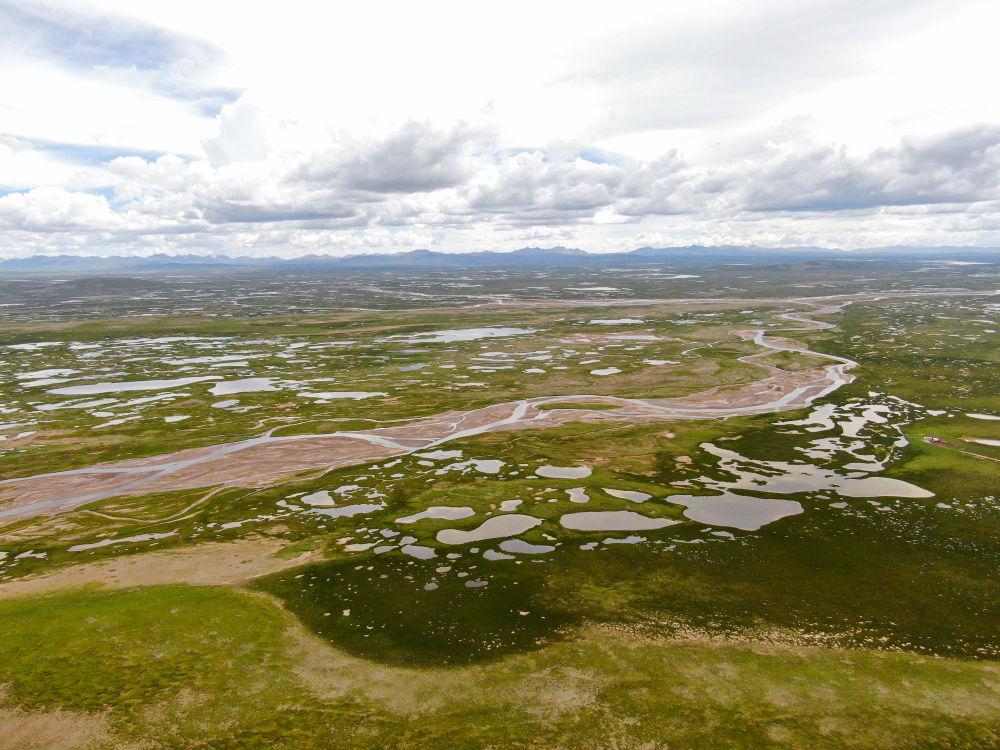 這是2022年7月27日在長(zhǎng)江源地區(qū)拍攝的囊極巴隴河道,長(zhǎng)江正源沱沱河和南源當(dāng)曲在此匯合。
